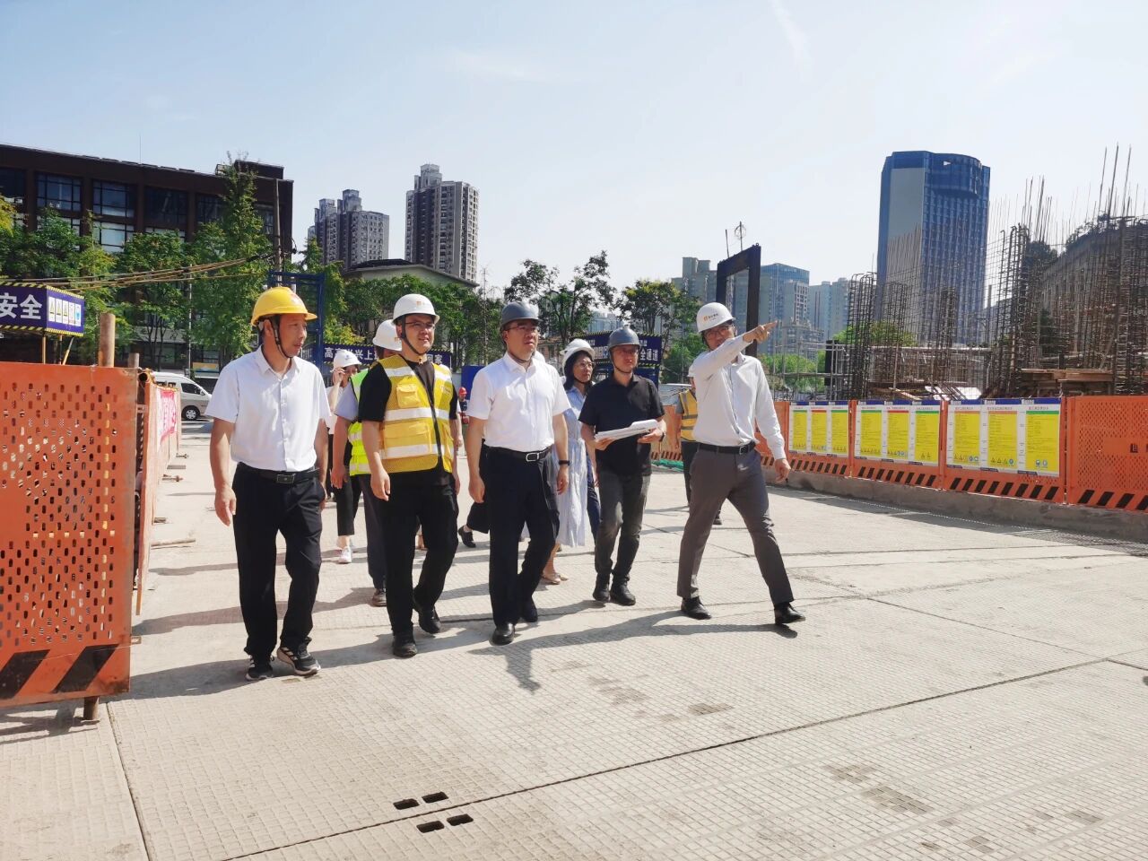 9月17日上午,上海市虹口區(qū)委書(shū)記李謙率隊(duì)蒞臨集團(tuán)承建的華潤(rùn)瑞府項(xiàng)目施工現(xiàn)場(chǎng)視察指導(dǎo)。集團(tuán)總裁助理李國(guó)明、項(xiàng)目負(fù)責(zé)人李陽(yáng)春予以熱情接待并全程陪同。抵達(dá)項(xiàng)目工地,李謙書(shū)記一行直奔施工現(xiàn)場(chǎng),深入一線了解工程施工情況,仔細(xì)詢問(wèn)項(xiàng)目工程概況、施工進(jìn)度、施工難點(diǎn)、項(xiàng)目推進(jìn)存在的問(wèn)題等事宜。集團(tuán)領(lǐng)導(dǎo)、項(xiàng)目負(fù)責(zé)人等逐一進(jìn)行匯